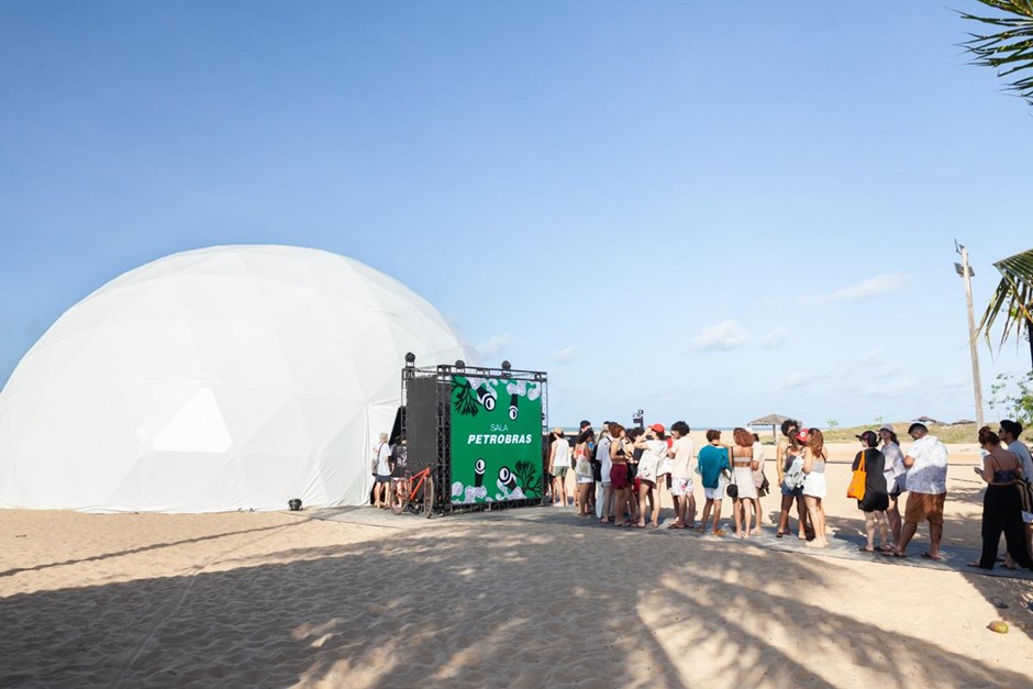 As sessões acontecem em uma tenda geodésica climatizada com capacidade para 115 pessoas, instalada na Praia do Maceió, proporcionando ao público uma experiência cinematográfica acolhedora e imersiva à beira-mar.