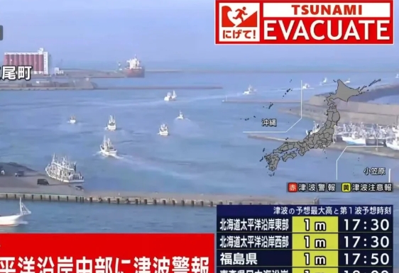 Imagens exibidas pela emissora NHK mostraram embarcações deixando o porto de Hachinohe, enquanto alertas de evacuação eram transmitidos.