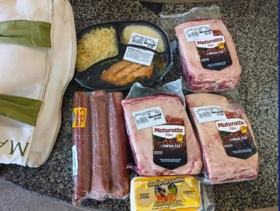 Ao chegarem ao local, os policiais constataram que o suspeito estava em posse de diversas mercadorias subtraídas do supermercado, configurando o crime de furto.