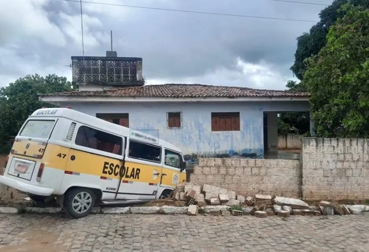 Uma kombi escolar derrubou o muro de uma residência após um acidente nesta quarta-feira (15), em Ceará-Mirim, na Grande Natal. O veículo transportava entre seis e oito crianças e colidiu com a estrutura após o motorista perder o controle, possivelmente por falha mecânica. Uma criança sofreu arranhões na perna, mas não precisou de atendimento médico.